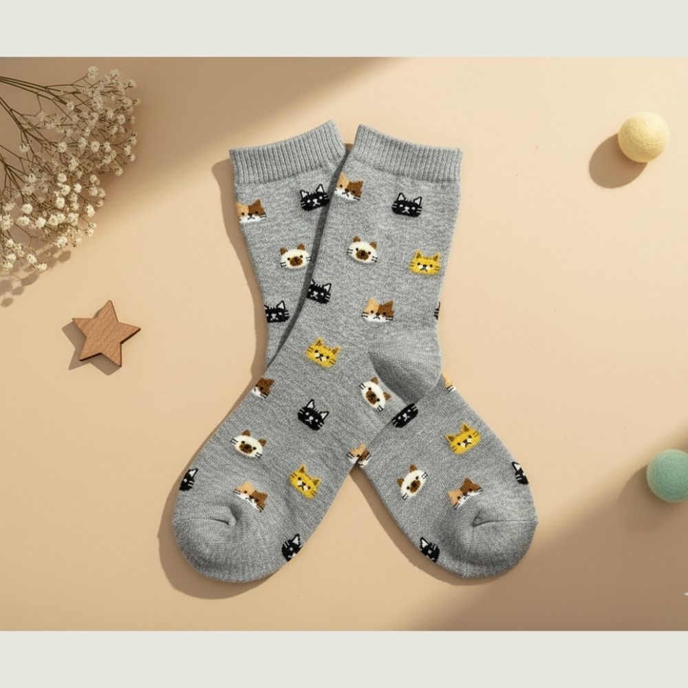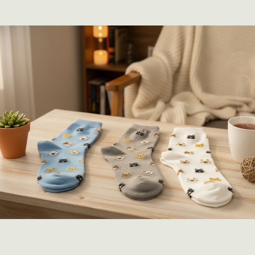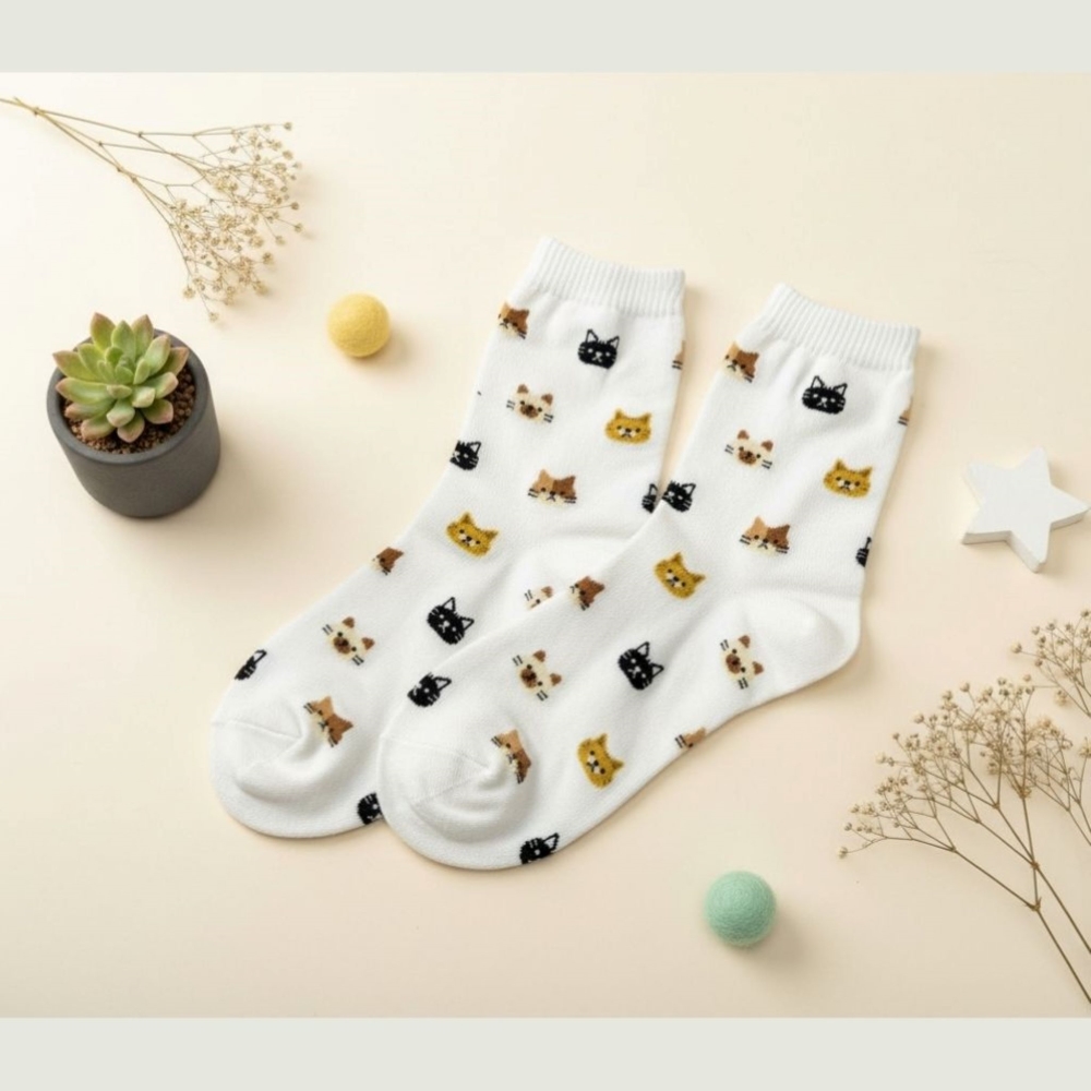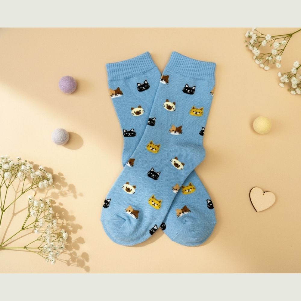 😺 商品特色 ・超萌小貓刺繡圖案,細節滿滿好療癒 ・三色可選:白 / 灰 / 藍 ・柔軟親膚棉質,厚薄適中不悶腳 ・中筒設計,搭鞋或居家都合適 ・每一步都有貓咪相隨🐾