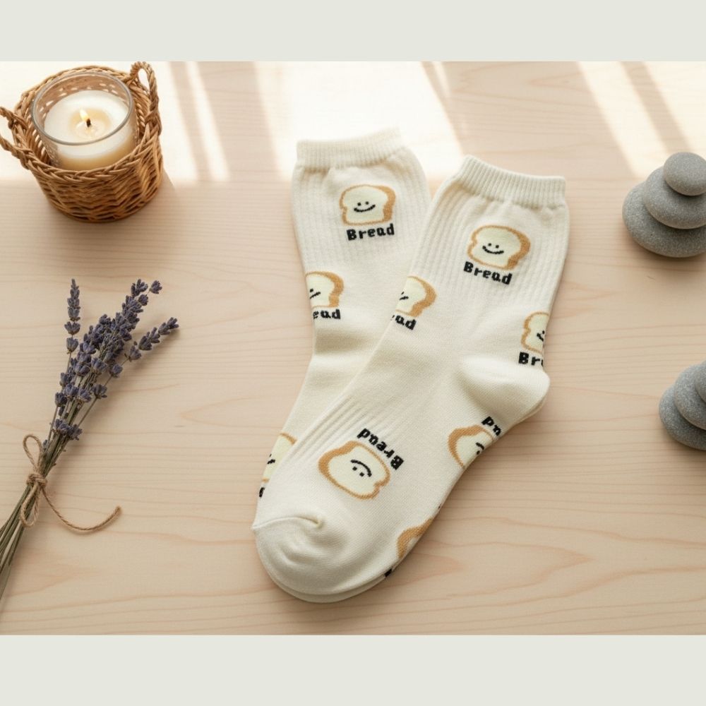 🍞 商品特色: ・Q萌食物刺繡圖案,可愛滿分✨ ・柔軟棉料,透氣不悶腳 ・彈性襪口設計,不勒腳不卡腳踝 ・四色可選:牛奶(藍)/炸蝦(白)/薯條(黑)/吐司(米) ・無論居家、上課、約會都超吸睛!